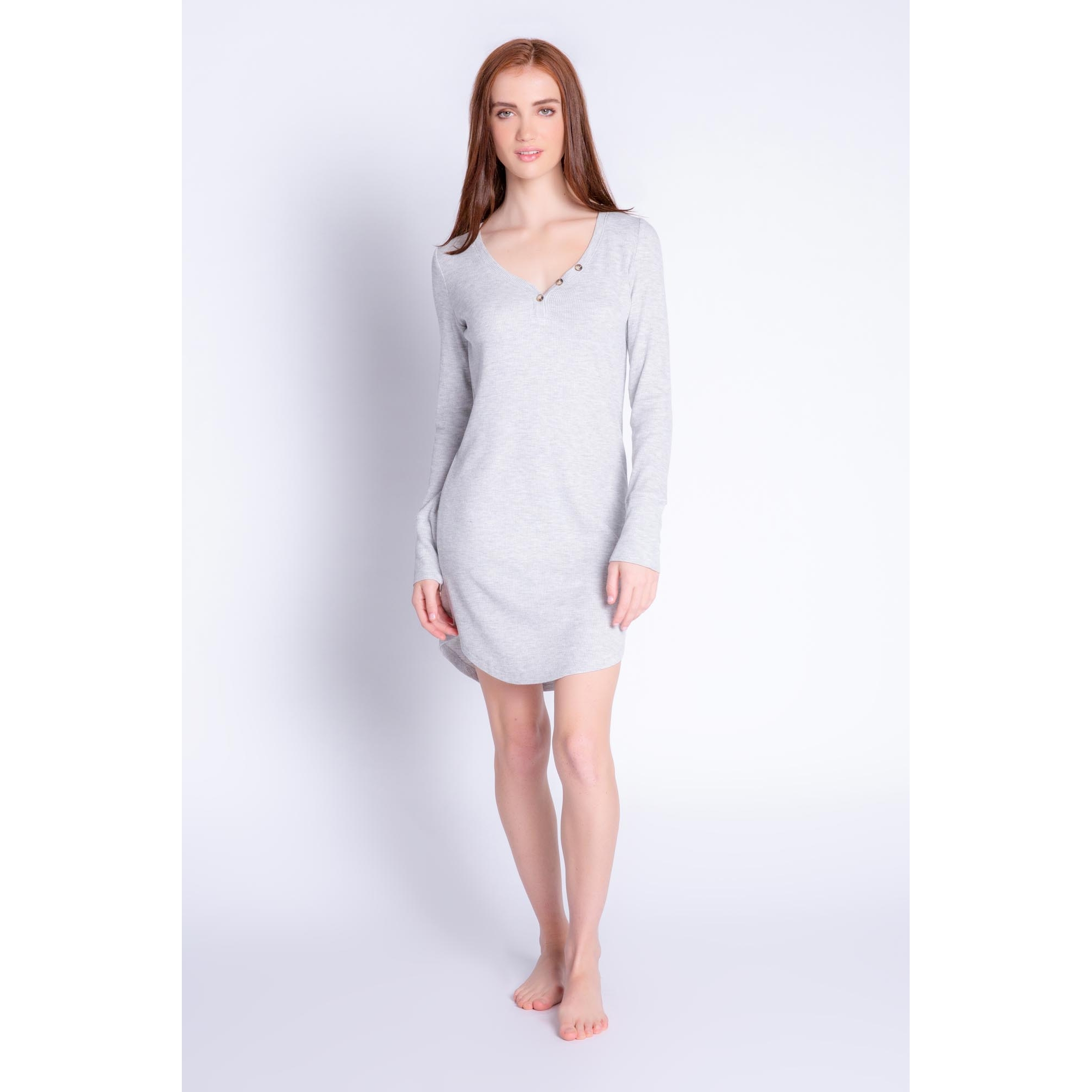 Your favorite Henley style becomes your favorite nightshirt. For those of us who love a good nightshirt - game over. This soft, brushed peachy 2x2 rib night dress is as comfy as it gets. Body-skimming V-neck sleep shirt with rounded hem and decorative buttons.